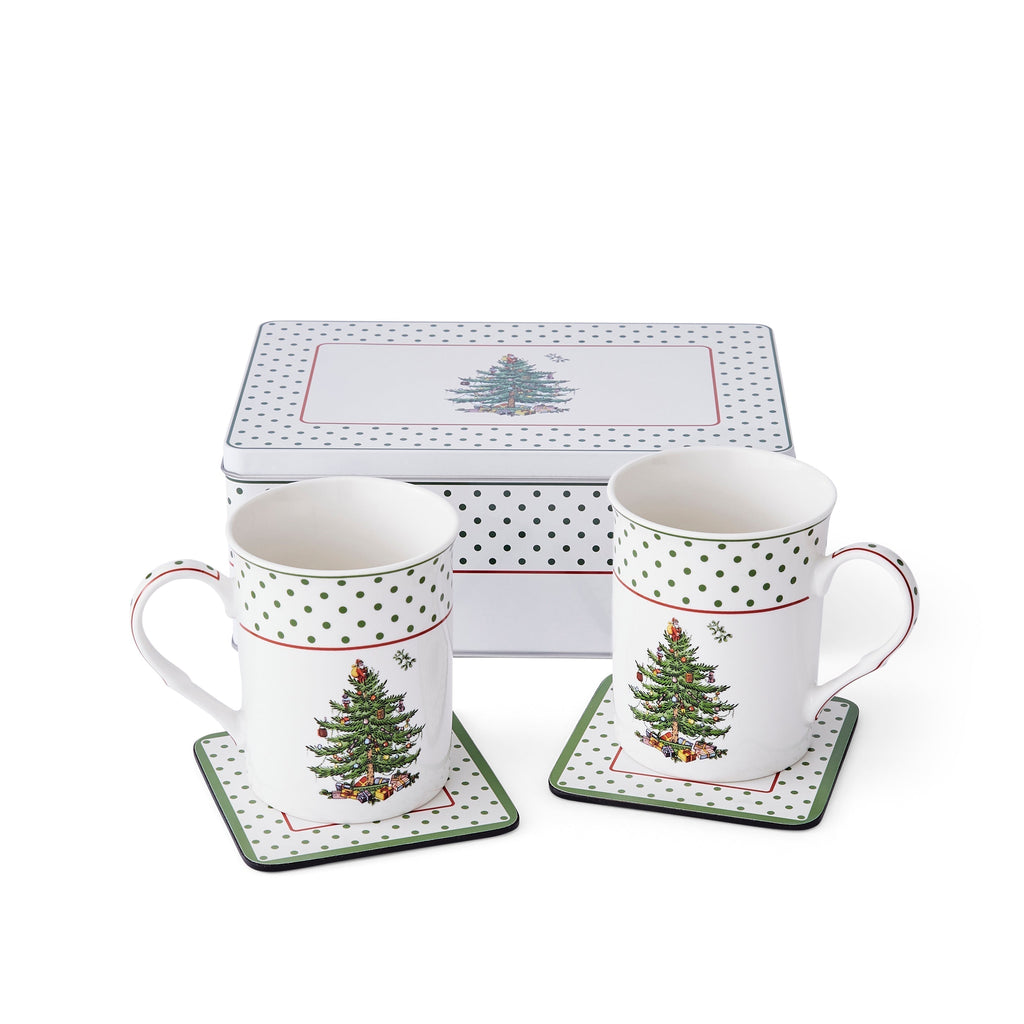 - Conteúdo da Embalagem: 05 peças (2 Canecas, 2 porta copos, 1 caixa metálica decorativa)